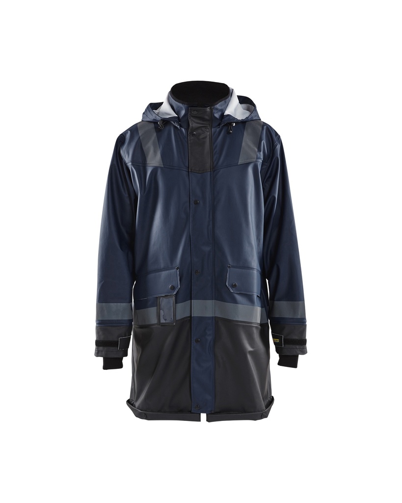 Kestävä ja toiminnallinen hieman pidempi sadetakki. Irrotettava huppu, joka menee kypärän päälle, pehmeää fleeceä kauluksen sisäpuolella, kaksisuuntainen ylös kaulukseen asti ylettyvä vetoketju listan alla ja korkea tuulelta suojaava kaulus. Isompi tasku vetoketjun vieressä listan alla. Materiaali on tuulen- ja vedenpitävää, liimatuilla saumoilla ja selkäosassa on tuuletusaukot. Helmassa napitettava vesiura, joka ohjaa veden pois ja hihoissa on sisäpuolella neopreeni rannekkeet, jotka estävät veden valumisen hihaan lisäksi hihat voidaan säätää tarroilla. Heijastavia mustia yksityiskohtia lisäämään näkyvyyttä. Sertifioitu EN 343.